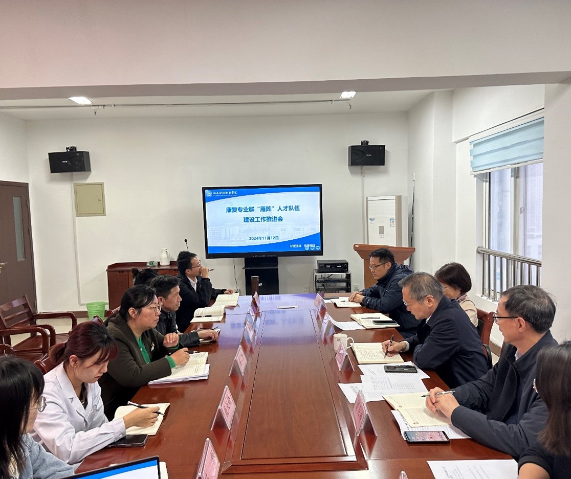 11月12日下午,康复专业群“雁阵”人才队伍建设工作推进会在康复学院实训楼1204会议室召开。校党委委员、副院长陈鸣鸣出席会议,康复学院副教授及以上职称人员、博士参加会议。会议由康复学院党总支书记曾巨祥主持。