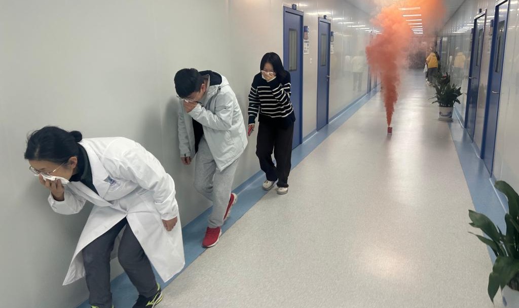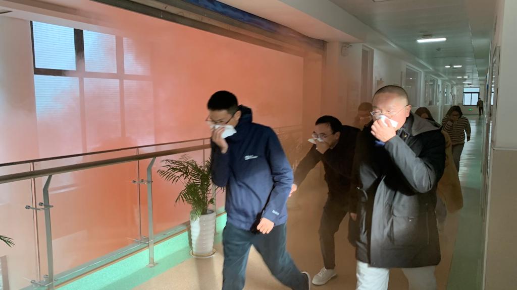 在演练活动开始前,部门组织教职工开展了消防培训、疏散逃生演练培训,并对逃生方法、注意事项和楼内各区的疏散路线都作了详细介绍,确保演练科学合理,安全进行。演练活动模拟火情发生,消防安全管理成员发现火情后立即启动消防应急预案进行应急处置,在疏散引导员的引导下,以湿布掩住口鼻、弯腰低头,迅速的从距离最近的安全楼梯向楼外安全区域疏散。