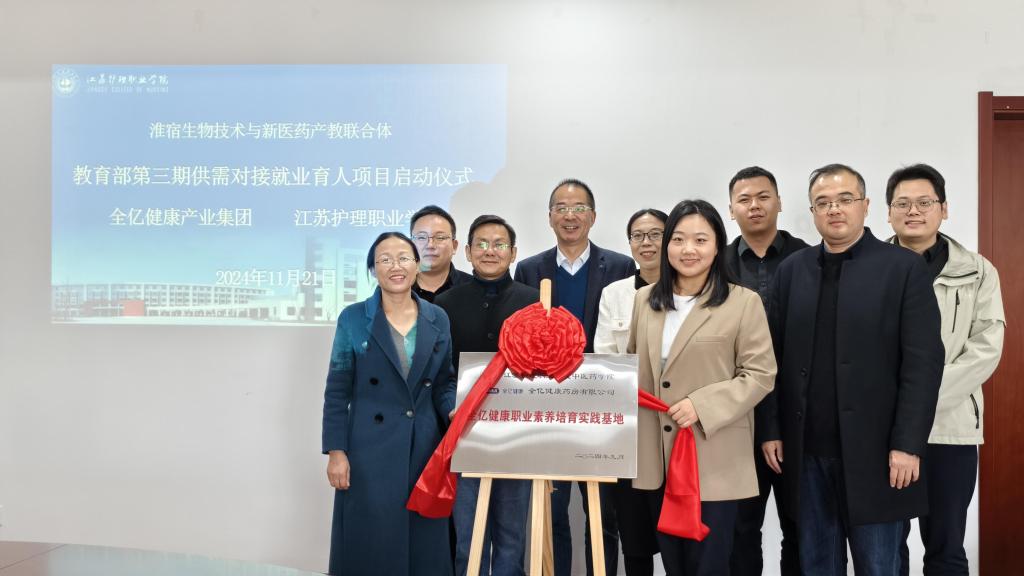 11月21日下午,淮宿生物技术与新医药产教联合体工作会议暨教育部第三期供需对接就业育人项目活动在beat365举行,出席本次活动的有校学生工作部部长丁善戎,中医药学院党总支书记韩永红、副院长王朝、副院长张艳军、药管专业带头人丁旭,全亿健康产业集团雇主品牌副总监范娜、人力资源主管赵国煜、人力资源经理刘锦涛、淮安广济分部人力资源部总监朱海霞等。活动由韩永红主持。