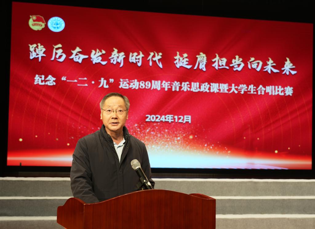 陈鸣鸣在致辞中指出,以“抗日爱国”为主线的一二·九运动,是中国青年在民族解放运动中写下的宏伟篇章。在这场运动中,青年学生以无畏的勇气和坚定的信念,站在了抗日救亡的前列,展现出了中国青年在民族危亡时刻的担当和力量。他强调,本次比赛不仅是对那段历史的致敬,更是对未来发展的激励。他对同学们提出三点希望:一是要铭记奋斗历程,传承红色基因。通过唱红歌讴歌、学习英雄先烈不畏艰难、大公无私的精神,塑造奋发图强、团结奋进的英雄气概和坚强意志,培树为祖国、为人民努力学习,勇于奉献的情怀。二是要坚定理想信念,争做时代先锋。作为新时代青年要坚定理想信念,将个人的成长与国家的命运紧密相连,为实现中华民族伟大复兴的中国梦贡献自己的力量。三是要锤炼扎实作风,练就过硬本领。充分运用学校和社会的学习资源,将基础理论与专业实践紧密融合,不断提高自身的专业修养和社会实践能力,要把个人理想同学校发展目标紧密结合起来,在苏护校史上留下属于自己的精彩一笔。