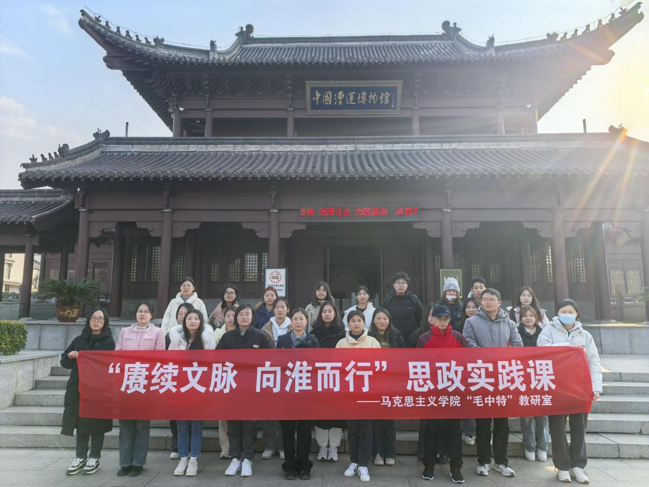 2024年12月11日下午,马克思主义学院“毛泽东思想和中国特色社会主义理论体系概论”教研室师生前往中国漕运博物馆上了一堂“赓续文脉 向淮而行”思政实践课。