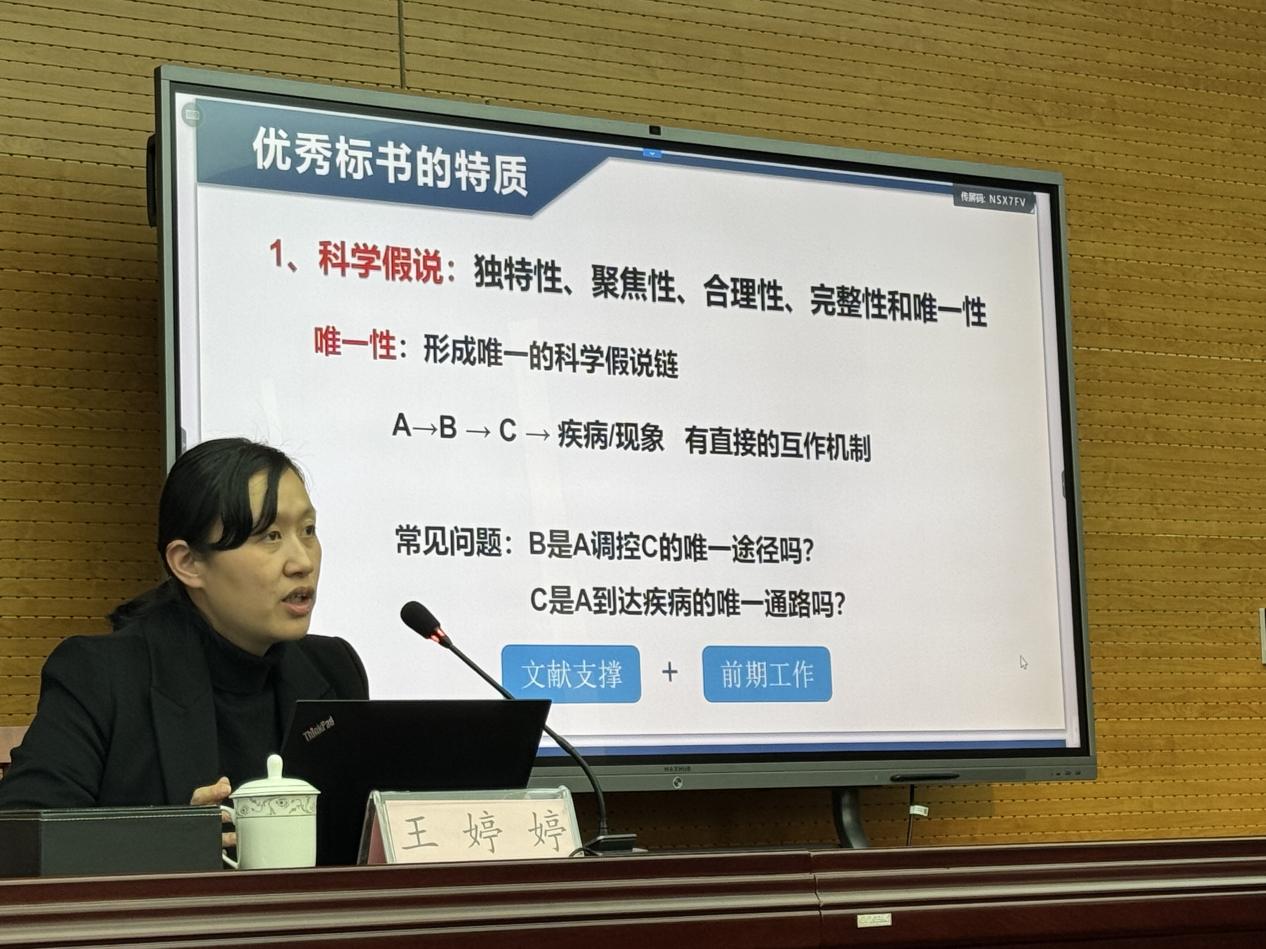 报告会上,王婷婷教授从2024年国家自然申报评审情况、国家自然基金评审最新流程、国家自然标书撰写要点三个方面分享了自己申报和撰写国家自然科学基金的经验和体会,重点介绍了几份优秀的国家自然科学基金申报书的特质以及撰写的共性技巧。王婷婷教授特别强调国家自然科学基金的申请和撰写要在研究基础上充分凸显个人的特点,发挥个人的创新性,做到有创新、有逻辑、有基础,并预祝各位老师在2025年国自然的申报中获得成功。