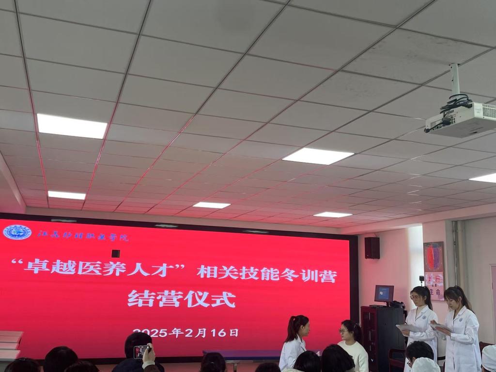 2025年2月16日上午9:00,“卓越医养人才”相关技能冬训营结营仪式在实训1号楼310实训室举行。学院党委委员、副院长夏立平出席,学生工作部副部长许步亮、二级院部院长、分管技能训练的院长、训练指导团队以及参加冬令营的全体师生参加。仪式由教务处副处长张玉领主持。