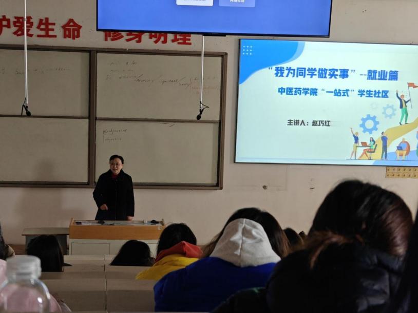 为落实中医药学院“一站式”学生社区“我为同学办实事”项目,帮助学生科学规划职业生涯,提升就业竞争力,2月19日,中医药学院“百草讲堂”邀请学院关工委副主任赵巧红举办了一场职业生涯规划讲座。
