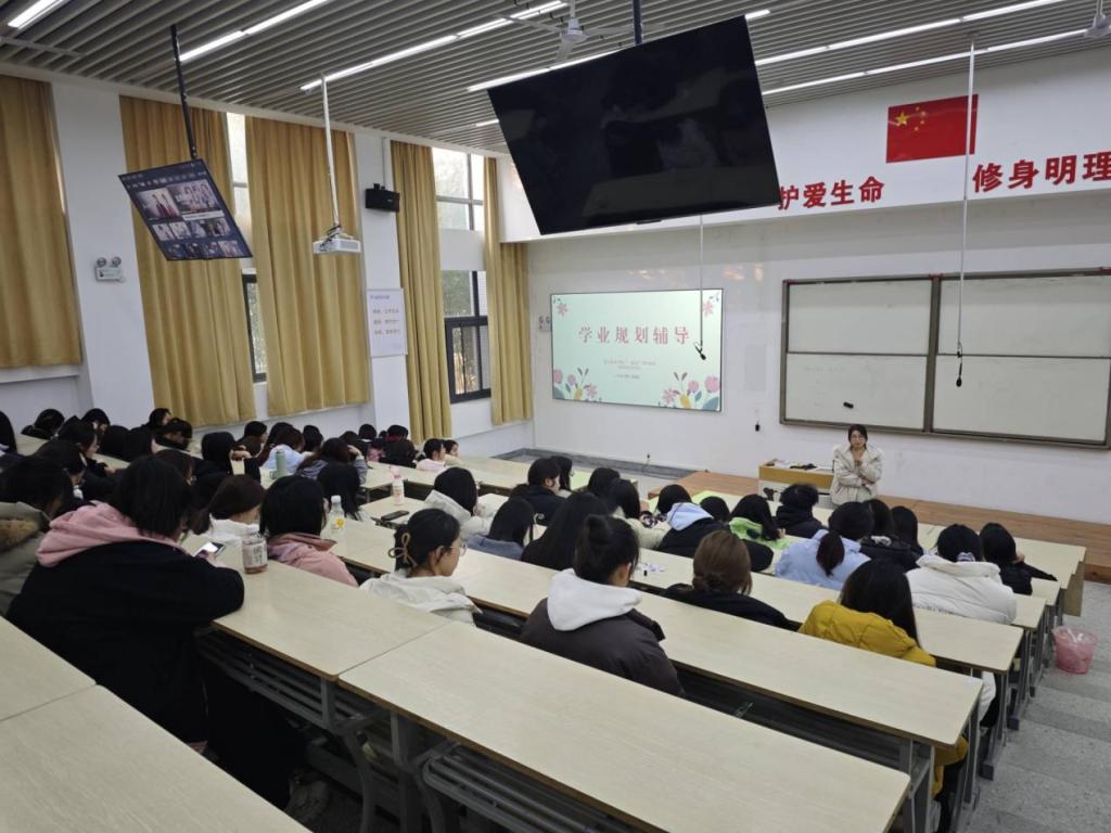 在未来规划方面,陈曦老师详细分析了升学与就业的形势。对于有升学意愿的同学,介绍了各专业对应的升学方向;在就业方面,结合医学领域的就业方向,阐述了传统就业方向和新兴科技相结合带来的新机遇,同时也强调了在实习中获取实操技能的重要性以及把握就业时机的关键性。此次宣讲会为同学们搭建了交流平台,不仅解答了同学们在专业学习和未来规划方面的困惑,还引导大家结合自身兴趣与社会需求,作出更合适的选择,助力同学们在学业和职业发展道路上稳步前行。