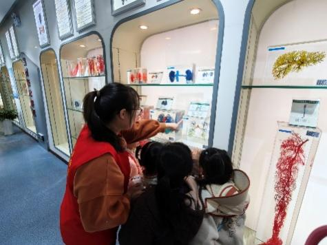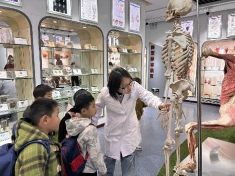 随后,小朋友们来到了人体生命科学馆。志愿者们以专业且热忱的态度,耐心细致地为孩子们讲解每一件展品,将复杂的人体结构知识转化为通俗易懂的内容,让孩子们感受生命的奥秘。