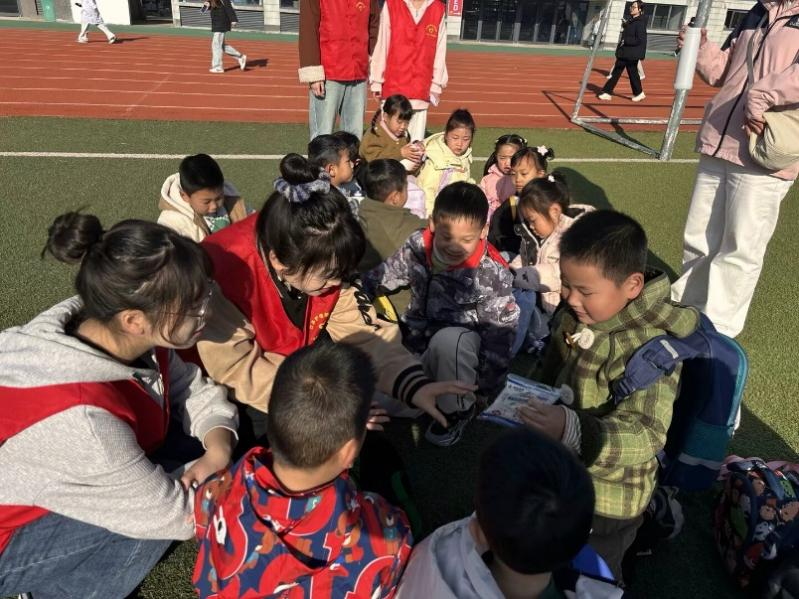 在志愿者的引导下,孩子们来到操场,兴奋地奔跑嬉戏,感受着校园的活力。
