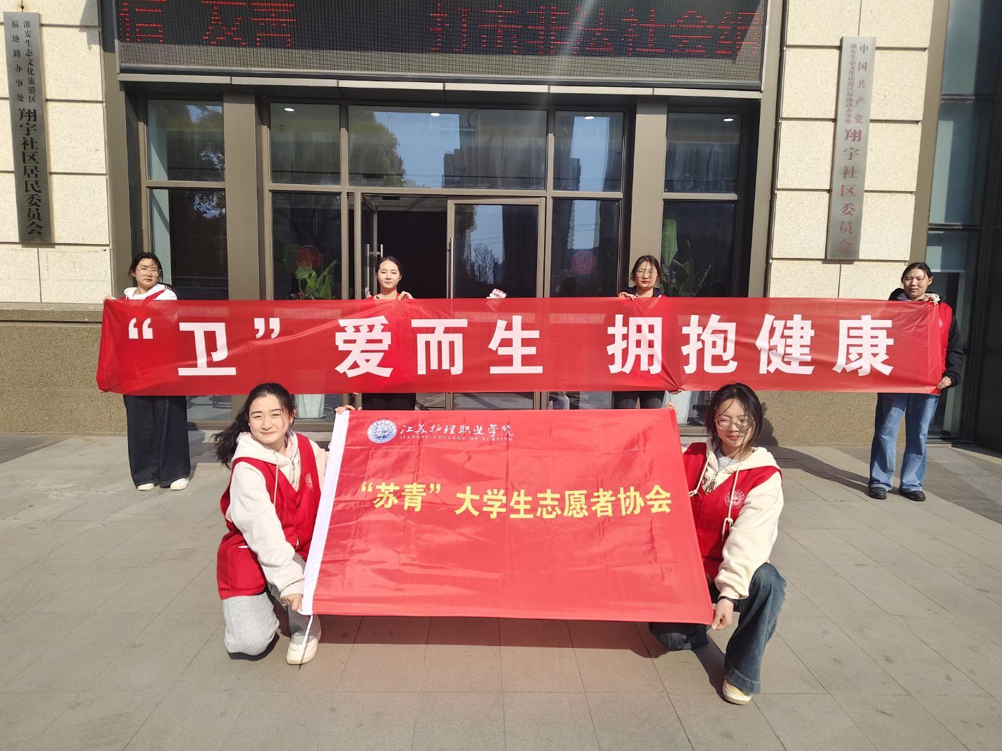 4月1日下午,为增强居民对春季传染病的防范意识,校团委组织“苏青”大学生志愿协会走进淮安市翔宇社区,开展了“卫爱而生 拥抱健康”主题志愿服务活动,以实际行动守护社区居民健康。