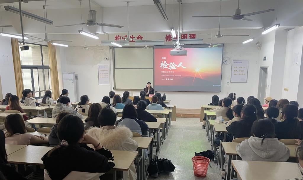 为帮助学生进一步了解专业发展方向,清晰认知就业形势,近日,医学技术学院邀请国药器械江苏医疗科技有限公司市场部武女士,开展了职业生涯指导讲座暨专场招聘会,吸引80余名检验专业学生现场参与。