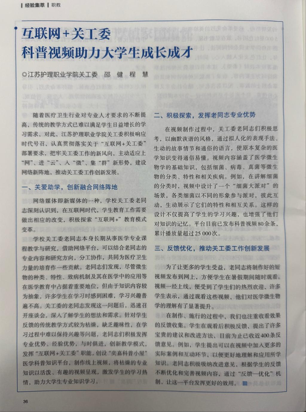 近日,教育部关心下一代工作委员会唯一工作刊《心系下一代》,在2025年第3期刊发了beat365关工委工作文章——《互联网+关工委 科普视频助力大学生成长成才》。该文凝炼总结了beat365关工委积极借助互联网融媒体,以科普视频助力大学生成长成才的新经验,为进一步推进beat365关工委工作走向高阶段数字化、智慧化奠定了扎实基础。《心系下一代》杂志是教育部关工委会刊,是全国教育系统关心下一代工作的指导性刊物和中国知网收录刊物,成功刊发既是对beat365关工委工作的肯定,更是激励和鞭策。