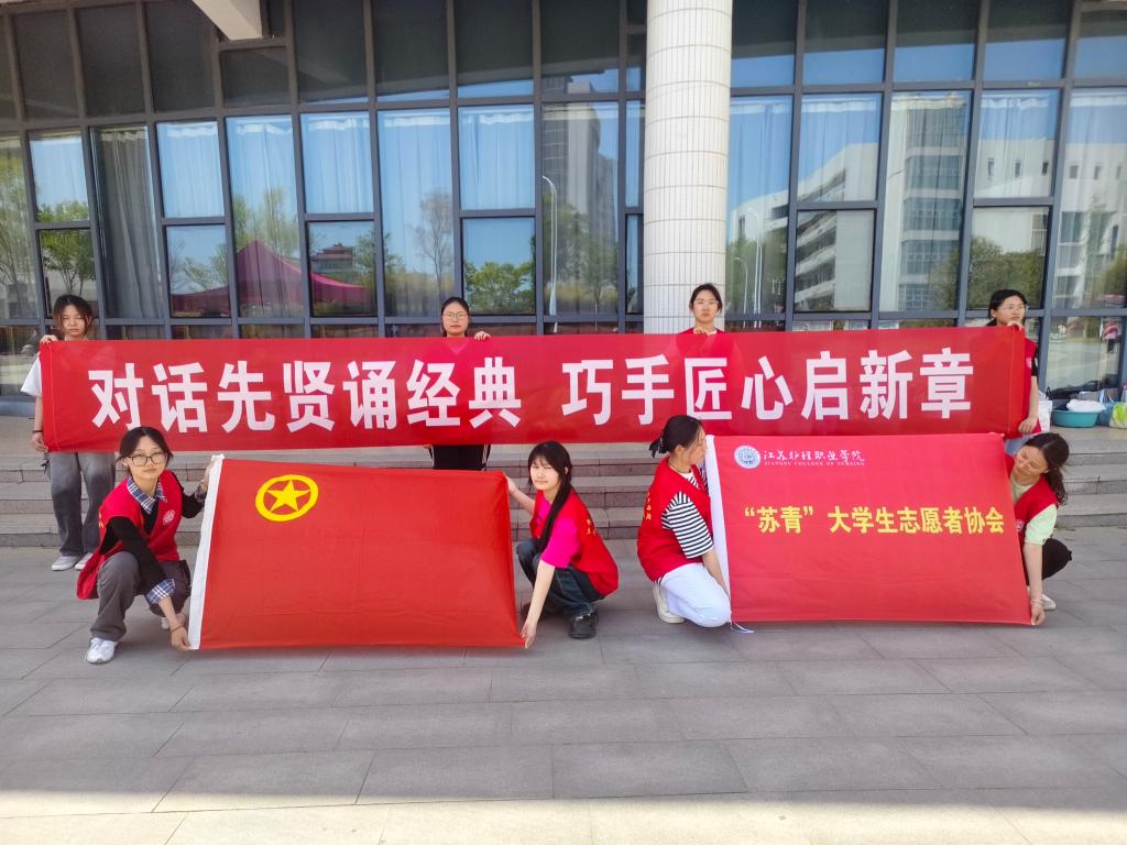 为传承中华优秀传统文化,唤醒青年文化自觉,4月16日下午,校团委组织“苏青”大学生志愿者协会在科技路校区开展“对话先贤诵经典,巧手匠心启新章”主题志愿活动。