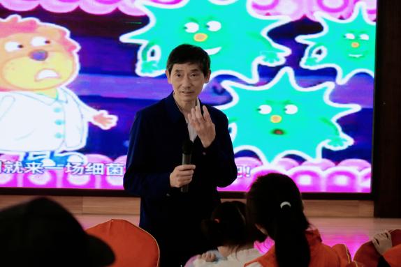 活动伊始,邵健为孩子们带来了一堂生动有趣的“认识细菌”小课程,引导孩子们养成良好的卫生习惯。紧接着,志愿者进行口腔健康知识宣讲,帮助孩子们掌握正确的口腔护理技巧。最后,志愿者还向孩子们讲授了心肺复苏、止血包扎等基本急救技能,提升孩子们应对突发情况的能力。