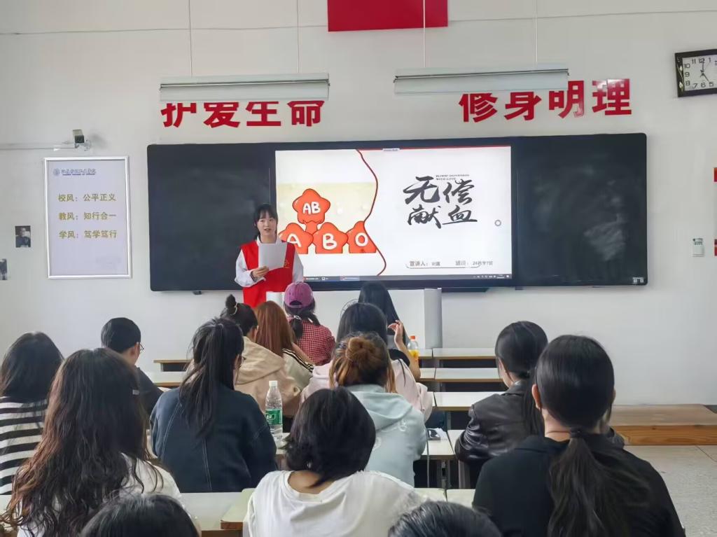 活动中,24药学7班刘璐同学作为无偿献血宣讲员,围绕无偿献血的意义、基本知识、关爱政策进行讲解。她生动阐述了血液对于拯救生命的重要性,普及献血前后的注意事项、献血量标准等常识,同时详细解读献血后的表彰奖励、用血优惠等关爱政策,让同学们对无偿献血有了全面认识。