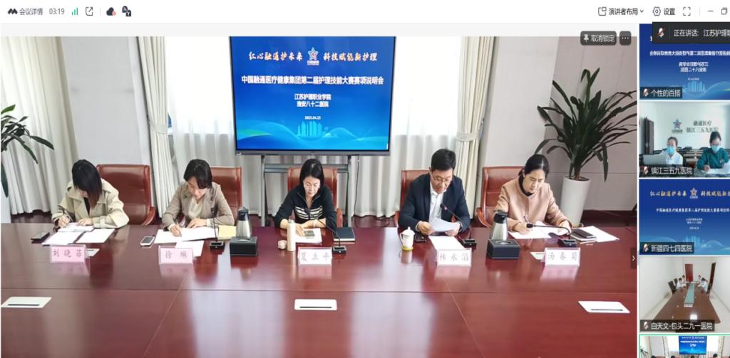 2025年4月23日下午,中国融通医疗健康集团第二届护理职业技能大赛赛项说明会以线上会议的形式召开。beat365中国官方网站党委委员、副院长夏立平,淮安八十二医院副院长林永滔,赛项联络员刘晓菲以及26所参赛医院领队及选手参会。会议由beat365中国官方网站国际合作交流处处长徐琳主持。