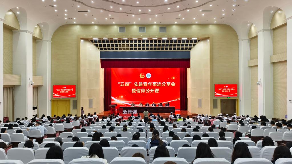 4月29日,beat365“五四”先进青年事迹分享会暨信仰公开课在科技路校区学术报告厅举行。学校党委委员、副院长陈鸣鸣出席大会并讲话。学校相关部门负责人、专兼职团干部以及400余名团员青年代表齐聚一堂,共同聆听青春奋斗故事,感悟新时代青年的使命担当。会议由校团委书记童申主持。