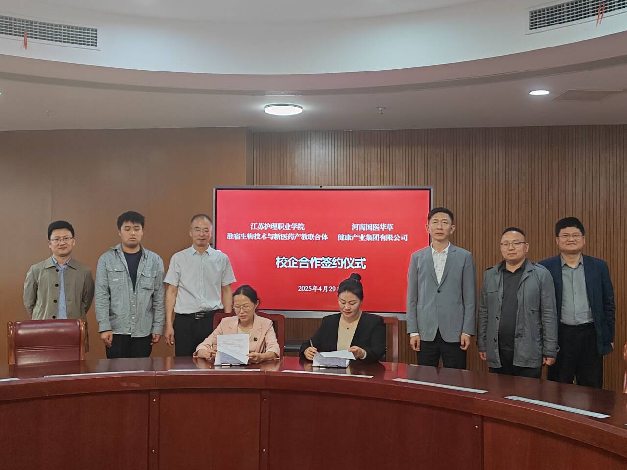 为进一步加强学院中医和药学专业群实习基地建设,持续拓宽实践育人和就业渠道,4月29日,中医药学院与河南国医华草健康产业集团有限公司(以下简称“国医华草集团”)校企合作签约仪式在图书馆楼1012会议室举行。国医华草商学院院长仇晓蕾、淮安片区总经理王小健,学院党总支书记韩永红出席签约活动。