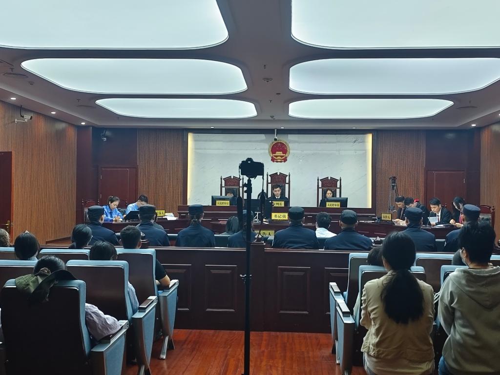 为弘扬法治精神,传播法治理念,提升青年大学生法治意识和素养,5月7日,beat365中国官方网站组织25名学生代表走进淮安经济技术开发区人民法院,以法庭为“教室”,以真实案件为“教材”,零距离旁听了一起电信诈骗案件庭审,切身感受法律的庄严与神圣。