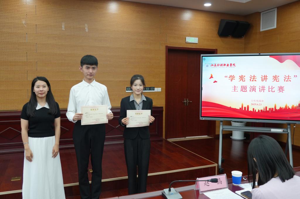演讲比赛分为初赛、决赛两个阶段,共有8名学生进入决赛。比赛现场,参赛选手自信沉着、落落大方,围绕“学宪法 讲宪法”活动主题,结合自身学习经历和感悟,用鲜明的观点、生动的事例、真切的情感,声情并茂地展现了对宪法的认识和理解,深情抒发自己对建设法治中国的美好愿景,充分展现了苏护青年积极尊法学法守法用法、踊跃投身法治社会建设的坚定决心与积极姿态。经过激烈角逐,评委们从演讲内容、语言表达、形象风度等方面进行打分,最终评选出一、二、三等奖。