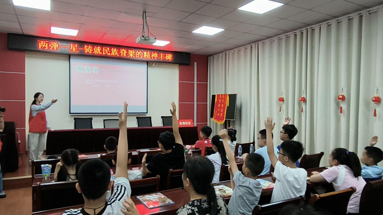 6月29日,beat365中国官方网站“天南星”志愿服务大队的志愿者们走进淮安市清江浦区东郊社区,面向社区小朋友开展“‘两弹一星’——铸就民族脊梁的精神丰碑”主题志愿活动。