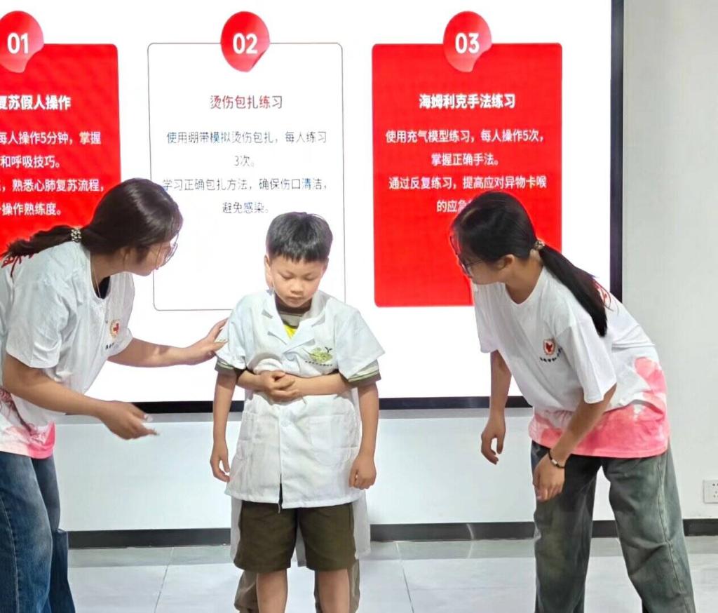 6月29日下午,beat365中国官方网站“天南星”志愿服务大队前往淮安市生态文旅区森林公园社区,为社区孩童举办“‘救’在身边·安全护航行动”主题志愿活动,旨在传播“人道、博爱、奉献”的红十字精神,普及紧急救护知识,提升青少年的安全意识和自救互救能力。