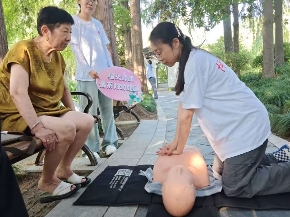 为提升妇女儿童健康素养,7月4日,“健康守护·爱在妇幼--妇儿健康科普赋能行动”在淮安市清晏园举行。护理助产学院“南丁格尔”志愿护理服务队的师生志愿者们通过急救技能培训、健康知识宣讲、传统文化体验等形式,为社区居民带来了一场别开生面的健康科普。