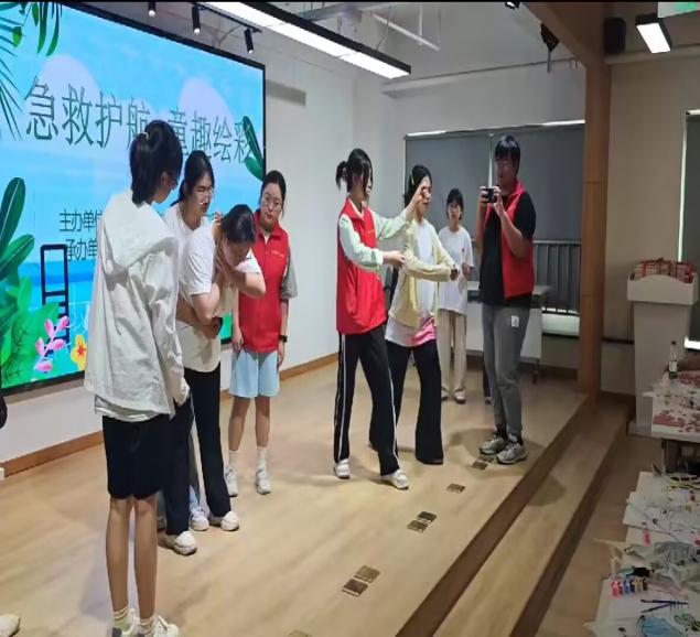 情景教学:急救技能轻松学。“快!有人噎住了!”只见一名志愿者扮演的“患者”表情痛苦,双手掐住脖子。其他志愿者立即上前,演示标准的海姆立克急救法。“记住要领:站在患者身后,一手握拳,拳眼对准肚脐上方,另一手抱住拳头,快速向上冲击。”清晰的解说配合准确的动作示范,让围观居民看得目不转睛。演示结束后,志愿者们邀请居民上台实操。65岁的王大妈第一个举手:“让我试试,这个技能太有用了!”在志愿者的指导下,王大妈成功完成了整套动作,赢得了阵阵掌声。“以前只在电视上看过急救演示,今天能亲手练习,感觉踏实多了。”李奶奶擦着汗说。为了帮助居民巩固记忆,志愿者们还设计了一套简单易学的急救操,将心肺复苏等基本技能融入舞蹈动作中。洗手操表演更是将活动推向高潮。五名志愿者身着统一服装,伴随着《洗手歌》的欢快旋律,用舞蹈形式演示七步洗手法。“内外夹弓大立腕,每个步骤都不能少!”领舞的志愿者们一边跳一边讲解,许多小朋友不由自主地跟着学起来。