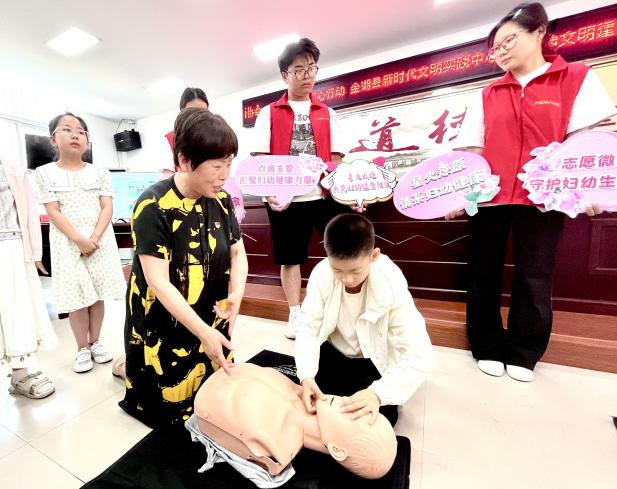 为深化校外教育辅导站建设,助力青少年健康成长,7月4日,护理助产学院关工委联合金湖县黎城街道关工委开展了“护航生命,争做急先锋”暑期校外辅导活动。金湖县关工委主任胡进、副主任王本强,护理助产学院党委副书记陈颖、学院关工委副主任周凤山、高晓阳及师生志愿者、辅导站群众共同参与活动。