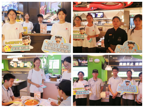 联动商家,安全意识“驻”下来。志愿者的行动更延伸至商场餐饮区。通过与餐饮商家紧密合作,“异物卡喉急救指南”的清晰桌牌被摆放在醒目位置。志愿者现场演示海姆立克急救法,直观的教学吸引了顾客驻足学习,也提升了店员应对突发状况的能力,为用餐安全增添了一道坚实防线。