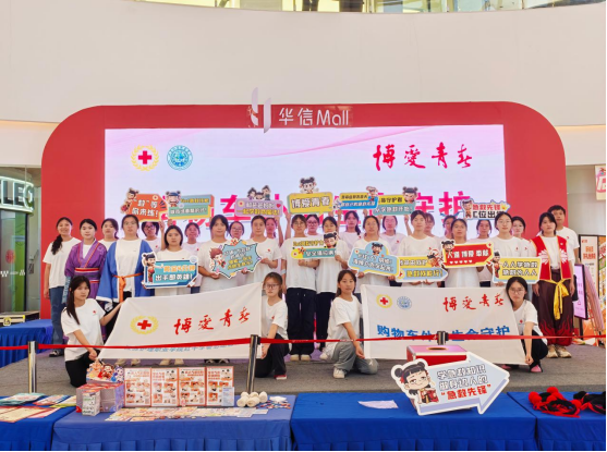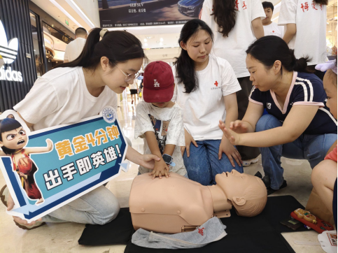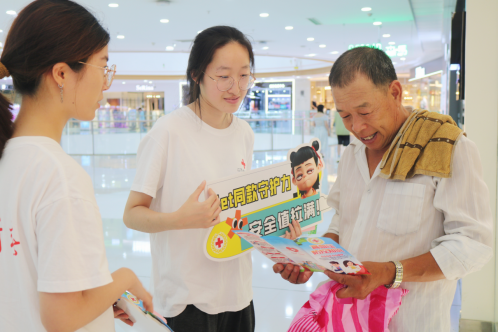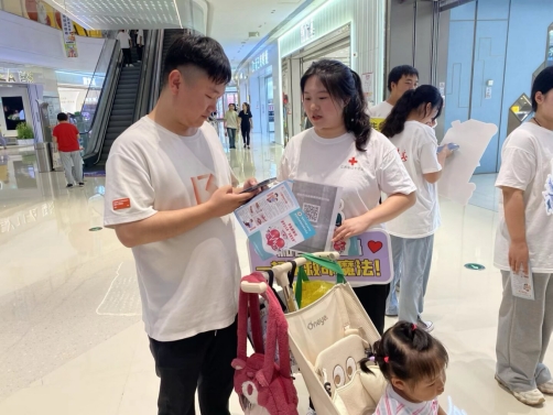 近日,在淮安融创、水渡口万达、金地Mall、吾悦广场、淮安区万达、华信Mall、汇通市场、梦乐城等八大繁华商圈,一场场守护生命的公益行动火热进行。beat365中国官方网站31名红十字志愿者放弃假日休息,深入市民购物休闲的第一线,集中开展“购物车外的生命守护”博爱青春暑期志愿服务活动。他们将专业的急救知识融入商圈的喧嚣中,在商场这一天然“流量池”中,为不同年龄段的市民送去实用的安全技能。
