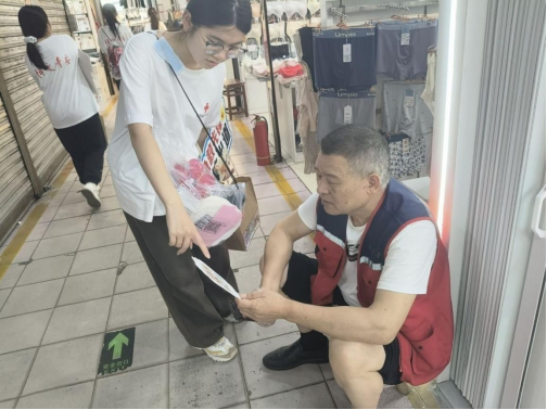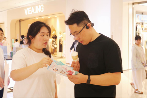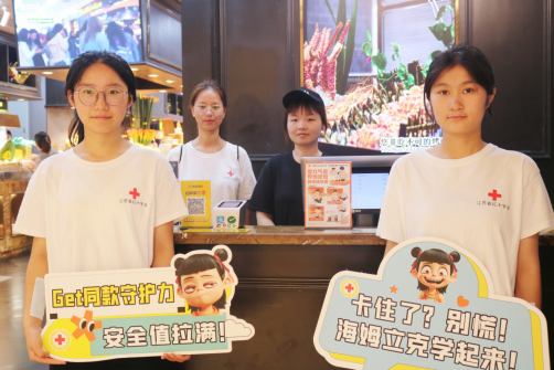 全域织网,安全浸润。志愿者的身影活跃在商场的各个角落。他们向过往市民分发急救宣传资料,开展市民急救素养问卷调查,精准了解需求,扩大传播覆盖面。在餐饮区域,设计醒目的“异物卡喉急救指南”桌牌被放置在餐桌上,志愿者还现场演示海姆立克急救法,这一举措不仅提升了顾客的就餐安全感,也有效增强了餐饮店员工应对突发气道异物梗阻的能力。