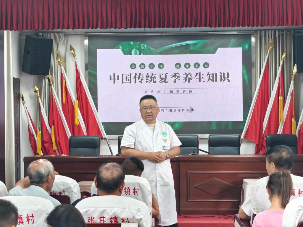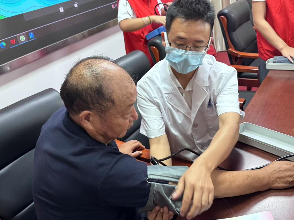 健康护航:构筑全民健康防护网。活动期间,学院中康专业张林落老师为村民提供血压、血糖检测服务,结合检测结果向老年人系统地讲解健康生活注意事项,并量身定制饮食与作息建议;中康专业陈世龙老师针对夏季气候特点,用通俗易懂的语言普及中国传统夏季养生知识,现场同步开展推拿按摩、艾灸体验等服务,使村民在实践体验中感受传统医学的独特优势。在八段锦教学环节,村民们跟随志愿者的指导认真学习,通过动静结合的锻炼方式,深入体悟健康养生之道。