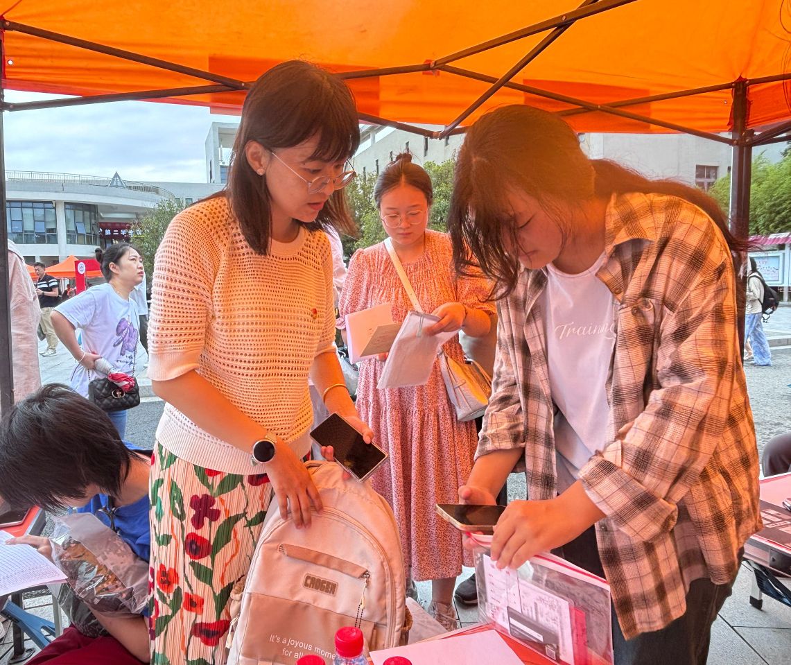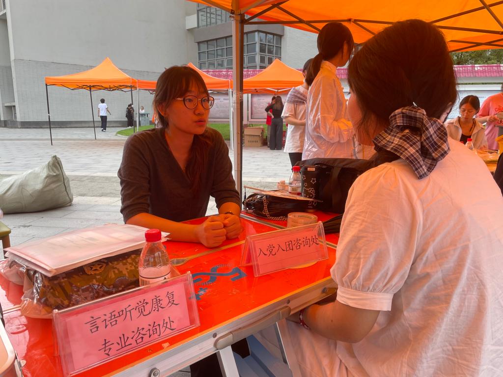 现场还设置了入党入团咨询处,支部选派学生党员详细解答关于入党流程、党员发展要求等问题,分享自己的入党初心和成长体会。交流成为了一堂生动的“入党启蒙课”,在新生心中播下了追求进步、向党靠拢的红色种子。