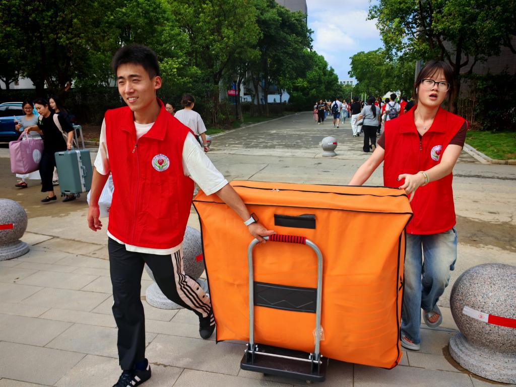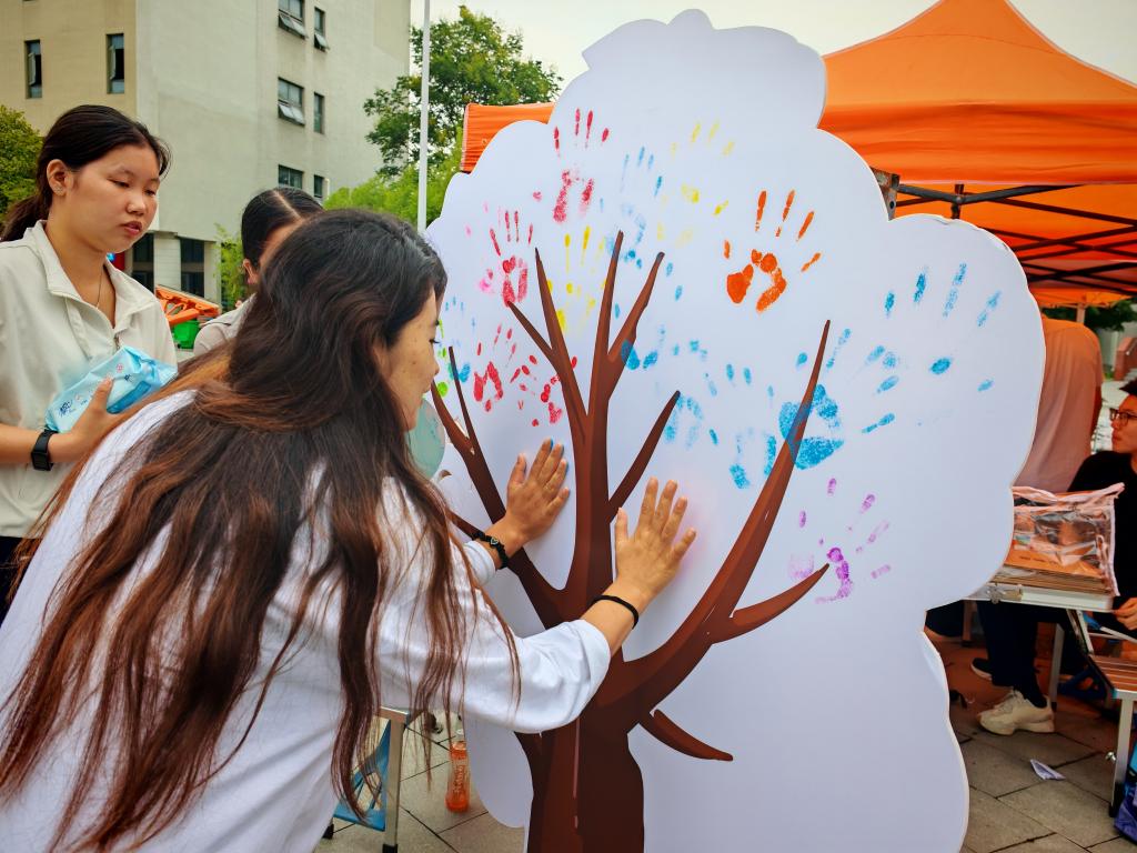 晨曦微露,细雨朦胧,志愿者们早已坚守在各自的岗位上。在校内各接待点、报到处和宿舍楼前,他们主动帮助新生搬运行李、指引路线、答疑解惑、办理手续,有效缓解了迎新高峰期的压力,保障了整个报到流程的高效顺畅。除了细致周到的服务,志愿者们还详细介绍了学校与beat365中国官方网站、专业设置和校园生活指南,并热情邀请新生参与漆扇制作、品味花茶、手印树打卡等特色迎新活动,并分享自身的学习经验与成长心得,助力新生更快更好地适应大学环境。