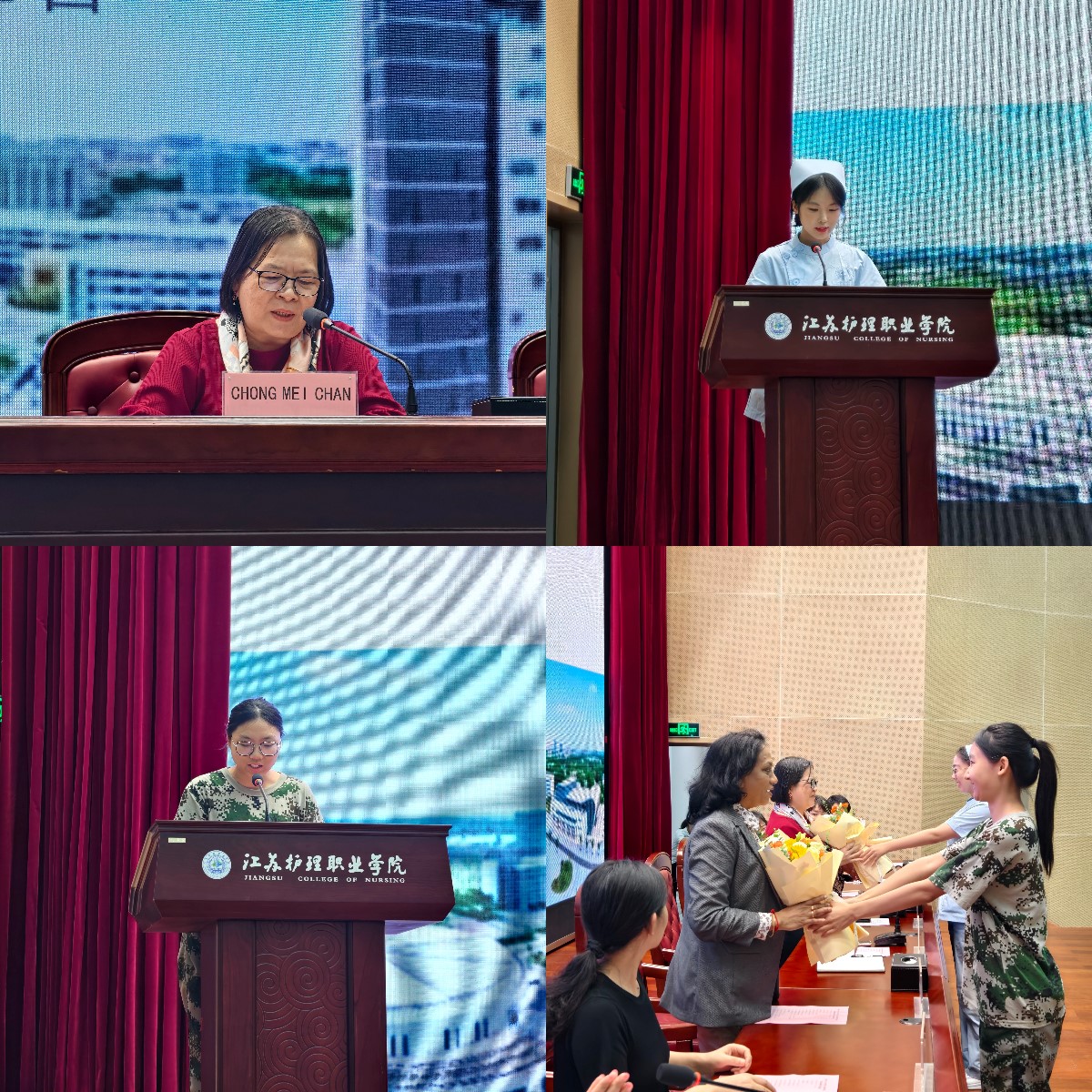 会上,护理助产学院党委书记张翠致辞。2024级合作办学班班主任郭加明老师汇报了暑期师生赴马来亚大学开展研学活动的情况。2025级合作办学班新生代表张月同学发言,表达了对大学生活的期待与决心。2024级俞诗颖同学分享了暑期在马来亚大学研学期间的收获与体会。适逢教师节,学生代表向马来亚大学张美珍教授与VIMALA RAMOO教授敬献鲜花,表达节日的诚挚祝福。
