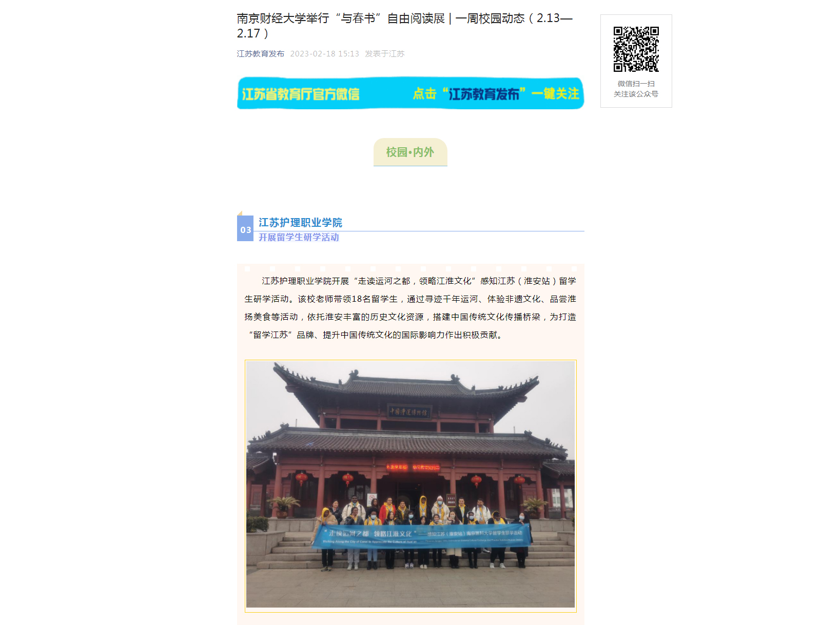 【江苏教育发布】beat365中国官方网站开展留学生研学活动
