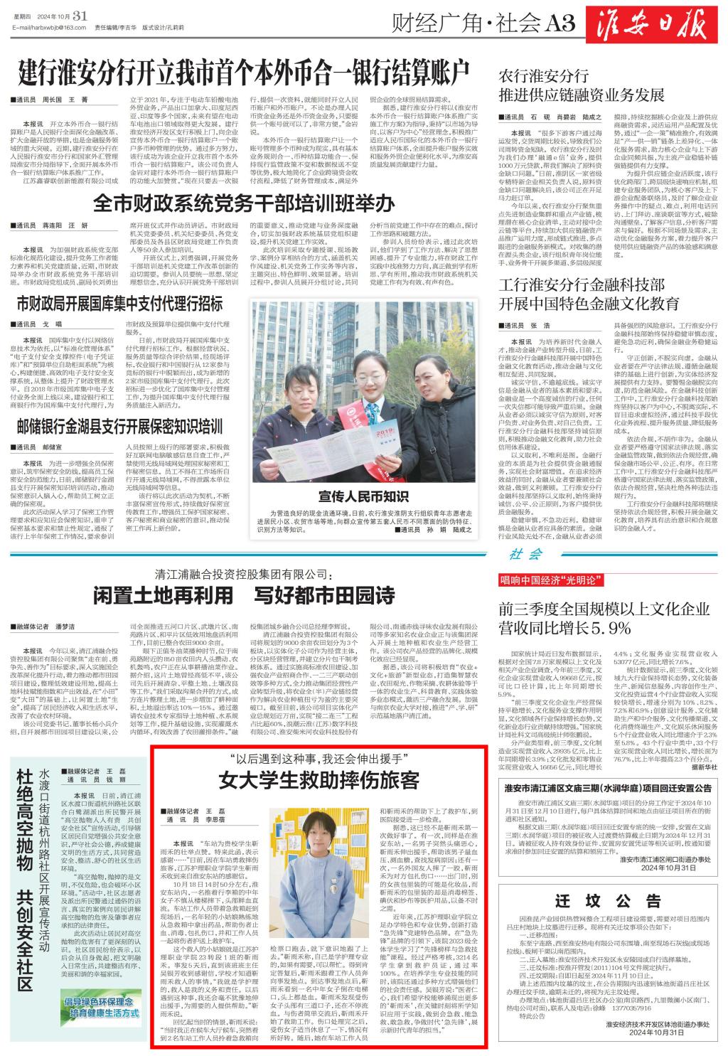 【淮安日报】beat365中国官方网站女大学生救助摔伤旅客