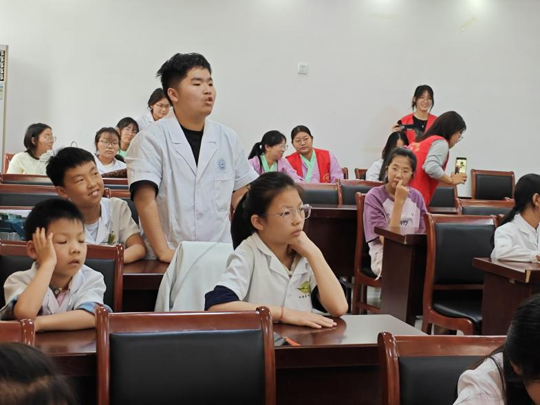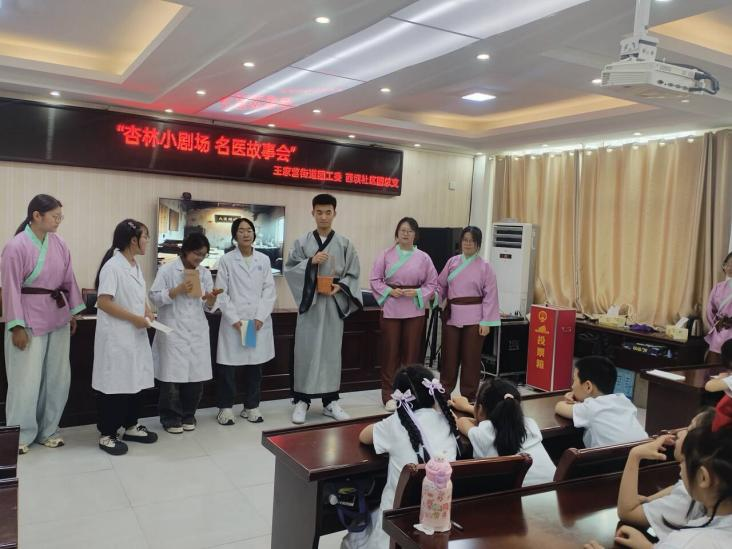 活动以原创情景剧《向阳而生》拉开序幕。志愿者们生动演绎了医学生在研讨吴鞠通温病理论时意外穿越清代疫区,与吴鞠通携手运用古今医学智慧抗疫的故事。跌宕的情节和逼真演绎,让小朋友们仿佛身临其境,深刻感受到团队协作的力量与传统医学的宝贵价值,在穿越剧情中体验到中医药文化的独特魅力。